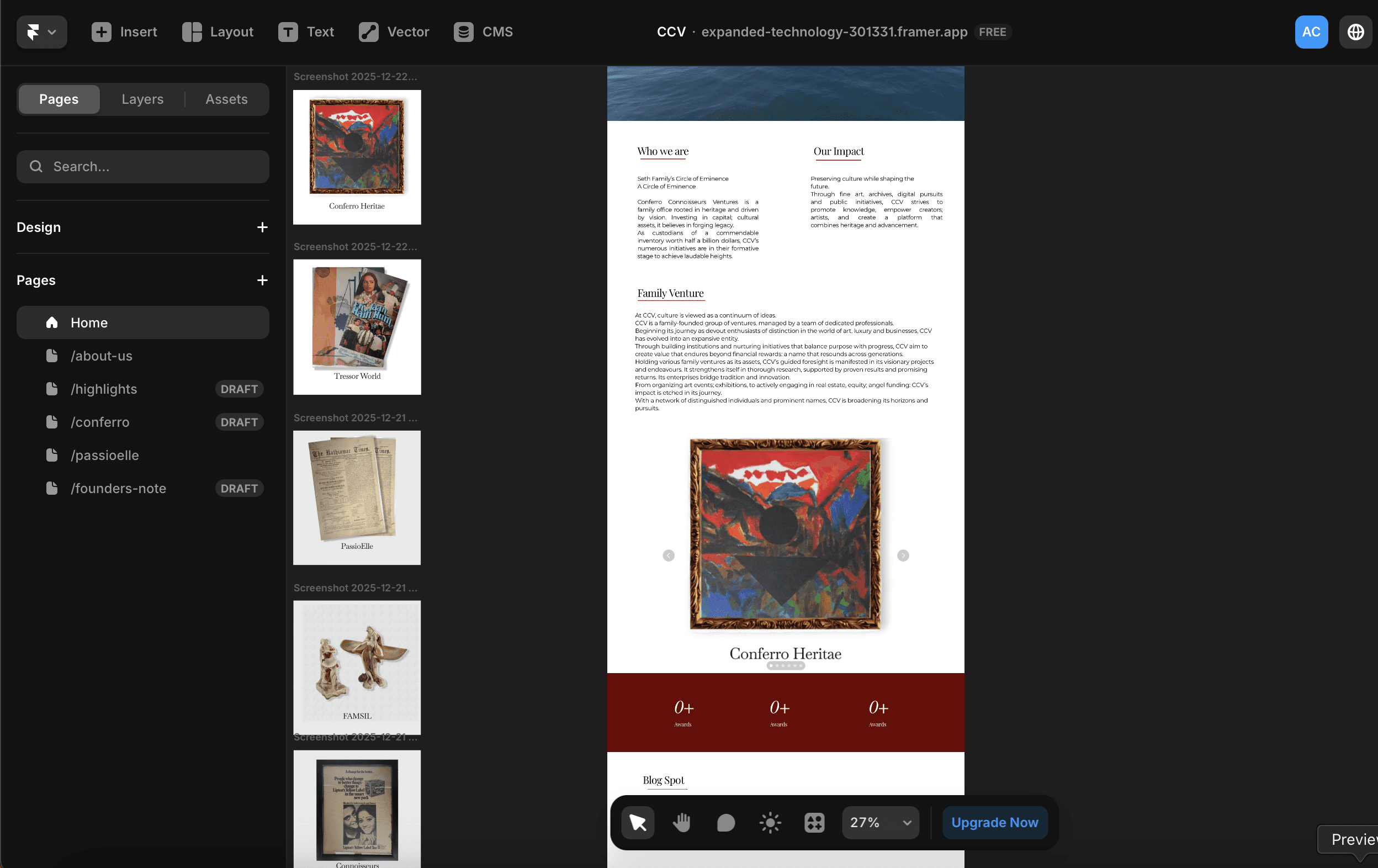 Many iterations and versions of the website was explored in order to finalise the theme and the layout that the liked